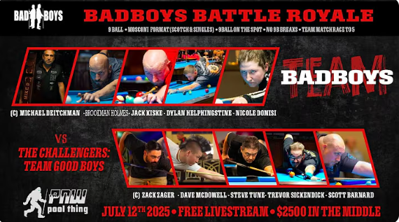 https://www.youtube.com/@PNWpoolthing-jb6qj This is a mini mosconi format between two five person teams. A combination of singles and scotch doubles matches and the team that gets to five wins first, is, well, the winner. It’s math. Commentary by Jesse Johnson and Stephanie Shurtliff. Check out ββwww.pnwpoolthing.com