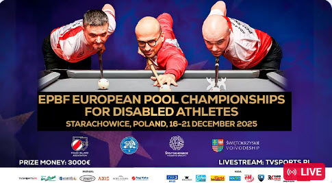 🎥 Watch Live 1 TV Table every day for free on ProBilliardTV youtube channel 🎥 Watch Live 5 Tables every day for free on OrangeForks Productions channel ► Results: https://www.umb-carom.org/PG344L2/Uni… 🇫🇷 Doozy – 3-Cushion Challenge 2025 ⚙️ 3-Cushion 📍 Complexe Sportif Eric Tabarly, Blois, France 🗓️ Dec 18 – 21 👤 24 players 💰 € 220,000 ▶ Sponsors ▸ Doozy ▸ Predator Group ▸ UMB ▸ Hollywood ▸ Iwan Simonis Billiard Cloth offical cloth ▸ Aramith Billiard Balls official balls ▶ Local Sponsors ▸ FF Billard ▸ City of Blois ▸ Beelodge Hotel Blois Centre